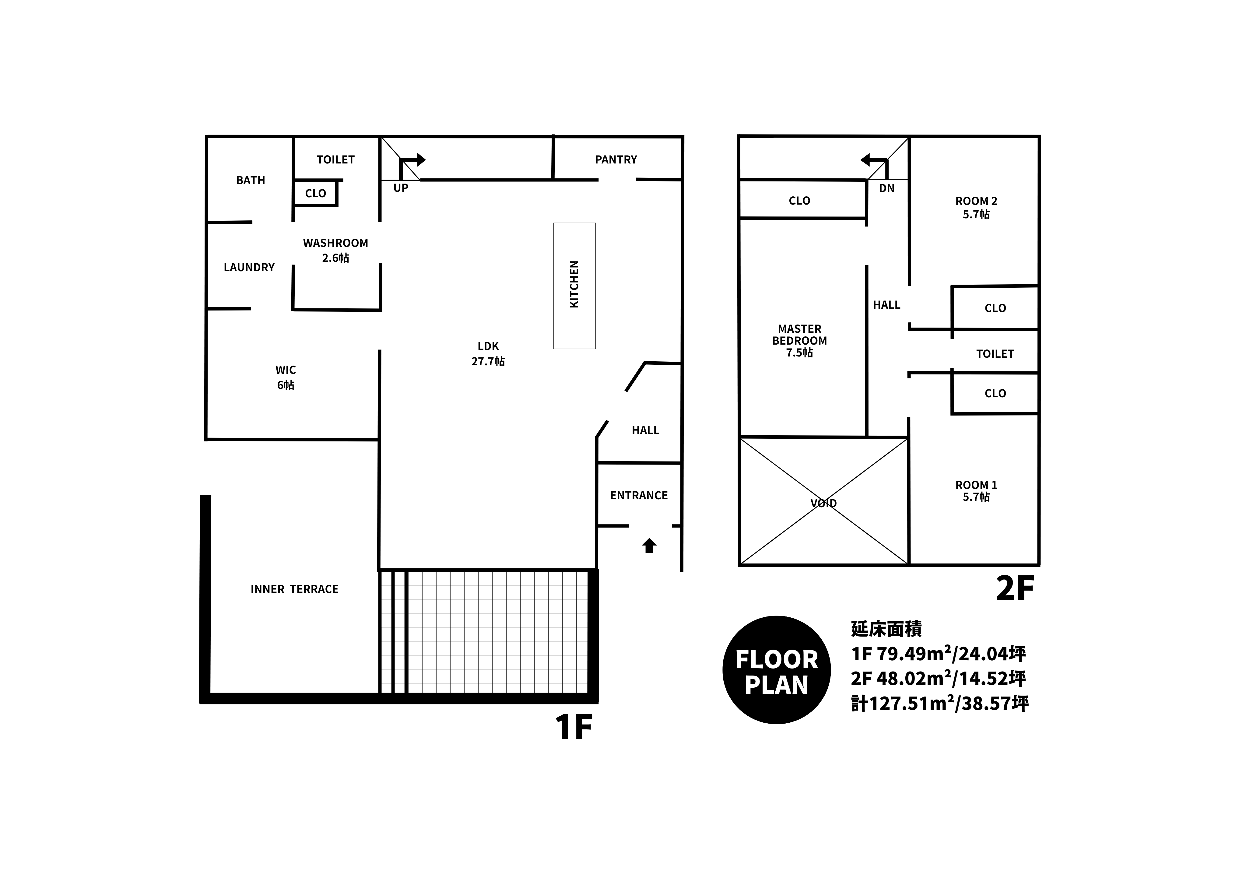 1F : 79.49m²(24.04坪) / 2F : 48.02m²(14.52坪)